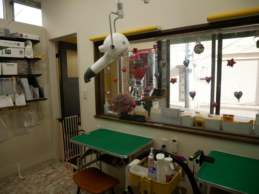 アットホームな雰囲気のドッグサロンです。広くて楽しい雰囲気のお部屋で、愛犬のお手入れができます。