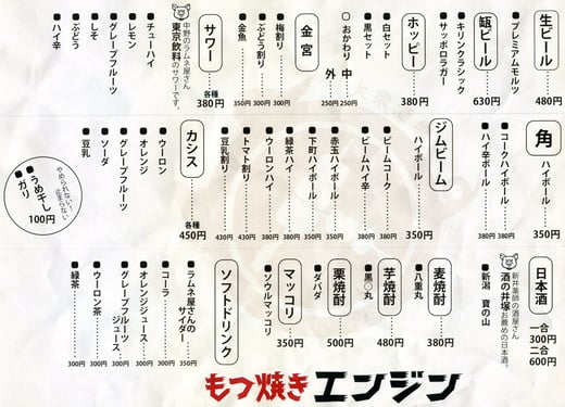 大衆酒場 もつ焼きエンジン TEL 03-5942-8947