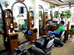 効率よりもお客様の気持ちを大切にするために、シャンプーコーナーを別に設置し、理容椅子の前面に大きな鏡を据え付けて、ゆったりとした気分で調髪できるようにデザインしています。