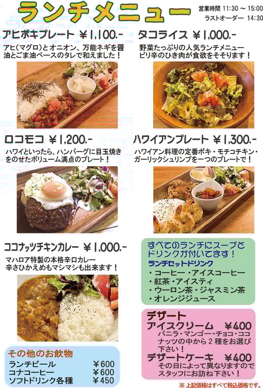 1ドリンク&スペシャルハワイアンランチ付で お一人様