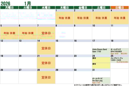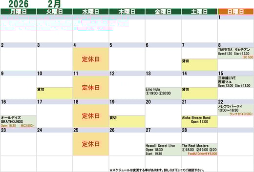マハロア イベントカレンダー